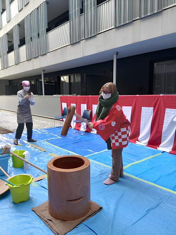 We held a “Mochitsuki (Rice Cake Pounding) Event” recently at Nishi-Waseda International Student House to provide residents with an opportunity to experience traditional Japanese culture. This event, which has been popular among dormitory residents, was once again filled with a lively and warm atmosphere throughout the day.
