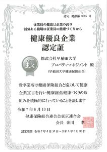 この宣言に基づき健康経営活動に取り組んだ結果、2025年6月10日に健康保険組合連合会東京連合会より『銀の認定』を取得しました。